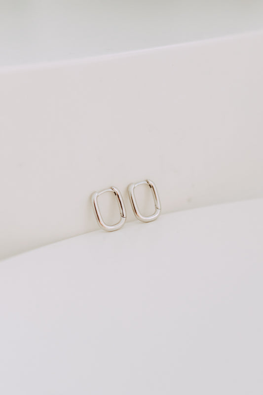 Petite Silver Rectangle Huggie Hoops