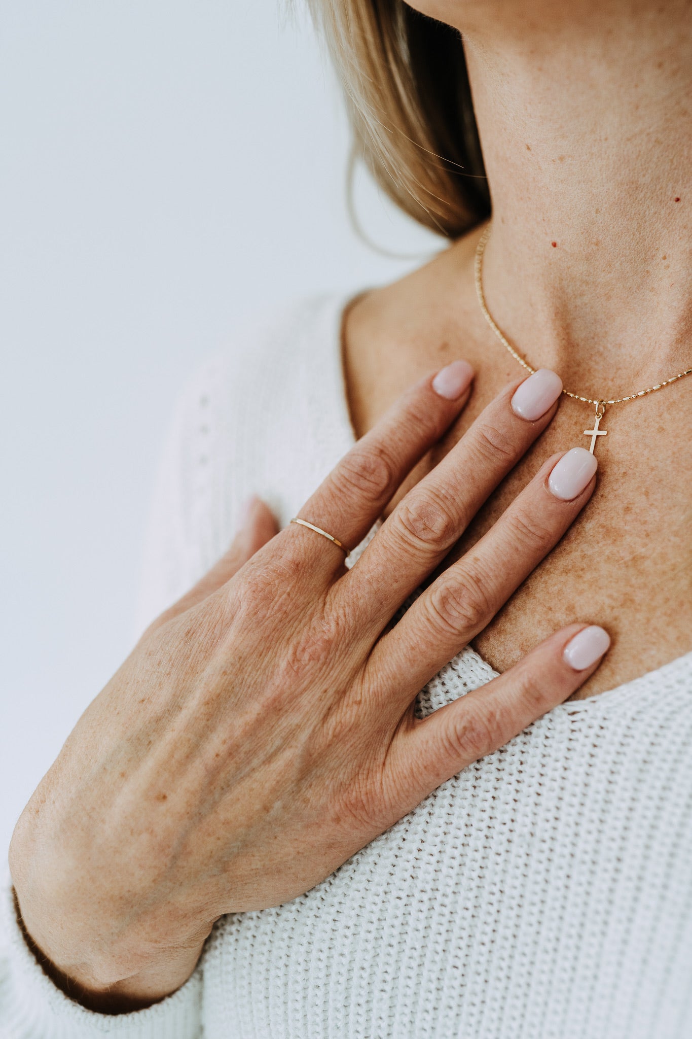 A little bit of texture, a lot of everyday wearability — the Hammered Ring has that hand-finished feel that makes it stand out just enough. The subtle hammered detail catches the light in the prettiest way, and the slightly thicker band gives it a touch more presence in your stack.