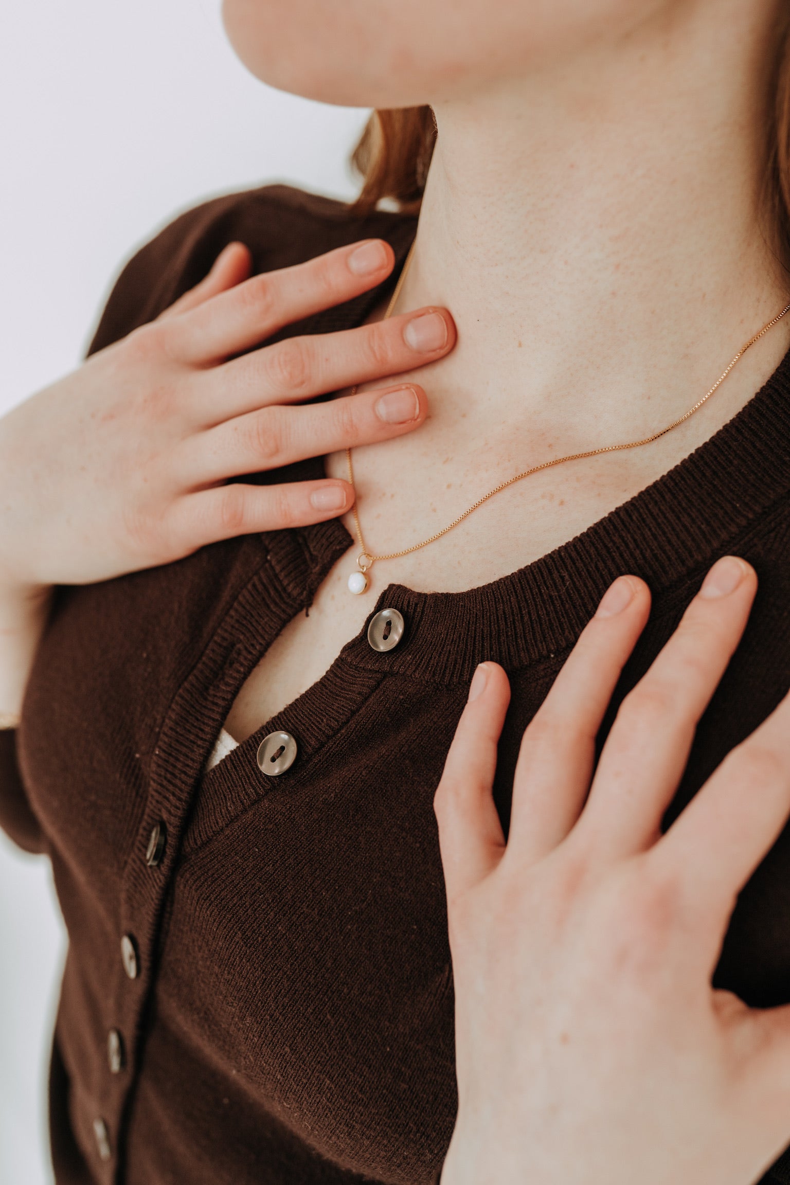 - Chain: Features a delicate + minimalist 0.9mm Box Chain.