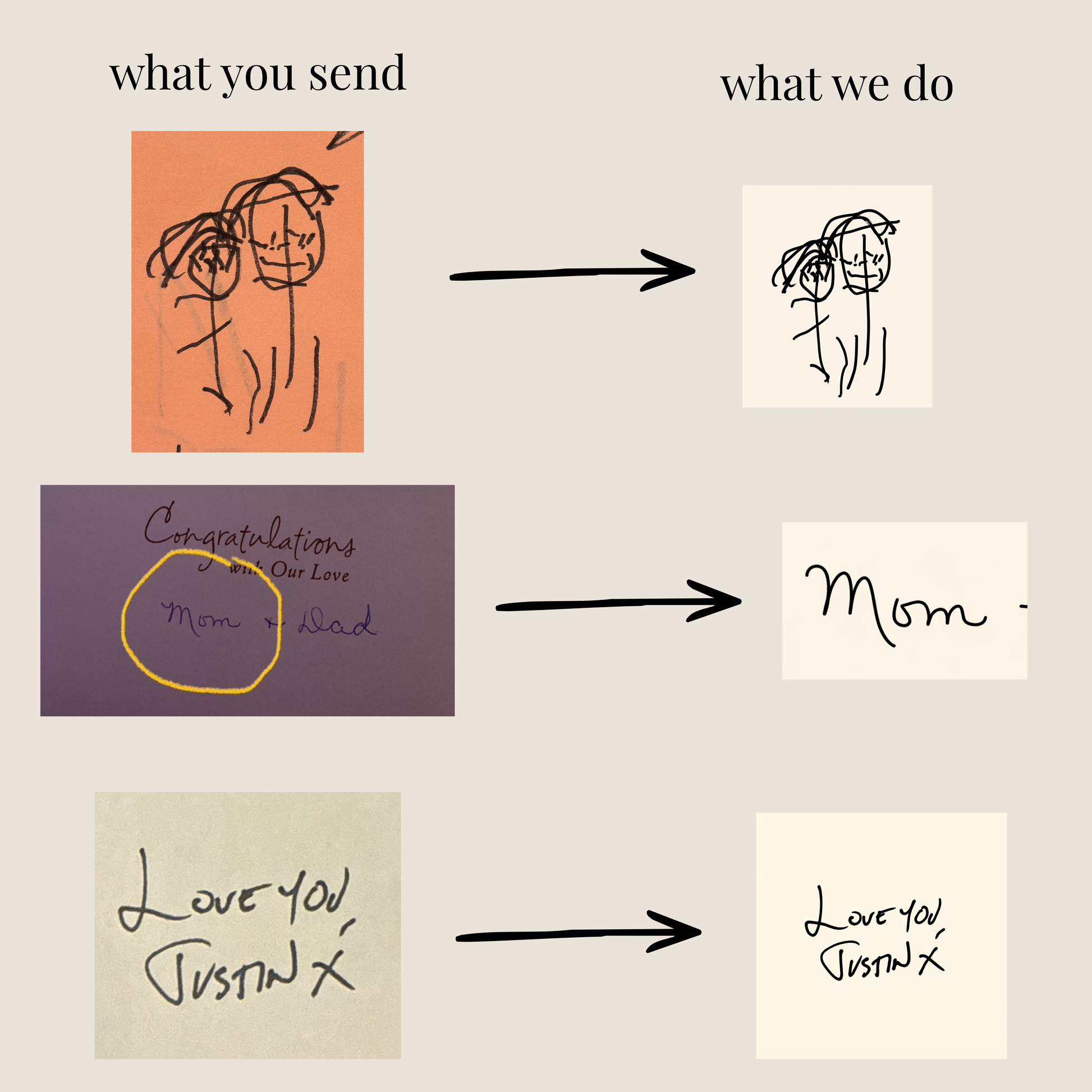 - Custom engraving using your submitted handwriting or drawing