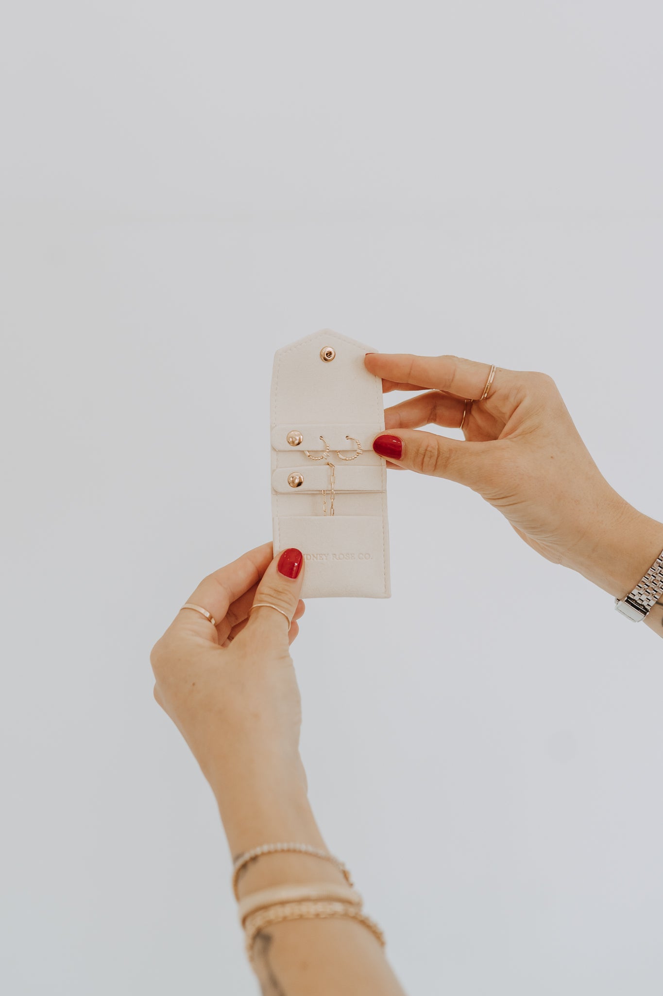 For the days you’re carrying just the basics, the Mini Essentials Case keeps your jewelry exactly where it should be—safe, secure, and ready when you are. Designed to slip effortlessly into your purse, gym bag, or even a jacket pocket, it holds your everyday pieces without the bulk.